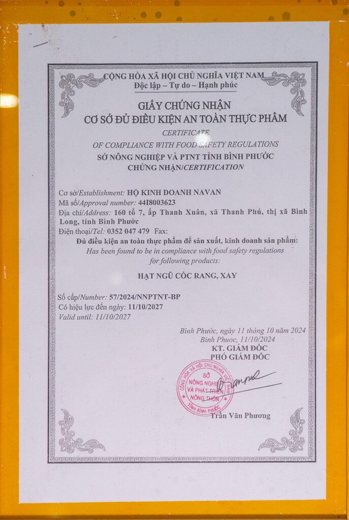 Xưởng sản xuất Hộ Kinh Doanh Navan: Chúng tôi sản sản xuất và phân phối bán hàng đầy đủ giấy tờ chứng nhận doanh nghiệp và giấy chứng nhận an toàn vệ sinh thực phẩm. Sứ mệnh mang đến cho khách hàng sản phẩm chất lượng tốt nhất